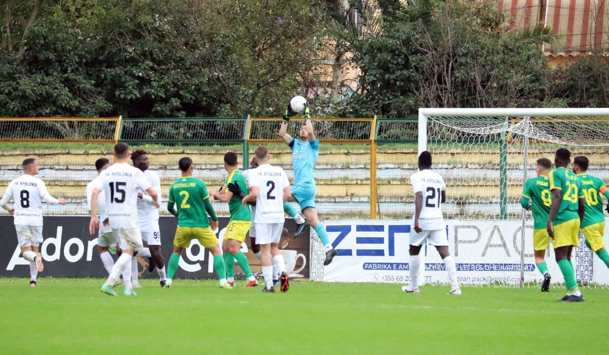 FK Apolonia ka filluar ndeshjen me vendosmëri për të fituar dhe në minutën e 55 Xhovalin Trifoni shënoi gol për Apoloninë, duke e dërguar topin në rrjetë dhe duke sjellë gëzim tek tifozët e ekipit.